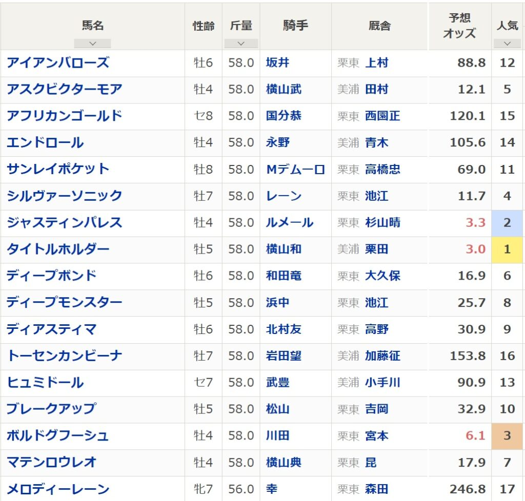 出走予定馬は以下の通りです。